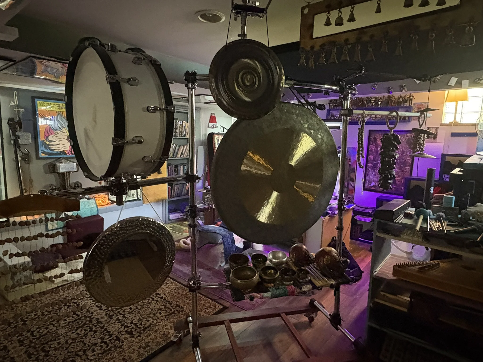 A wide variety of shakers, cowbells and other metal percussion, including some “trashy percussion.”